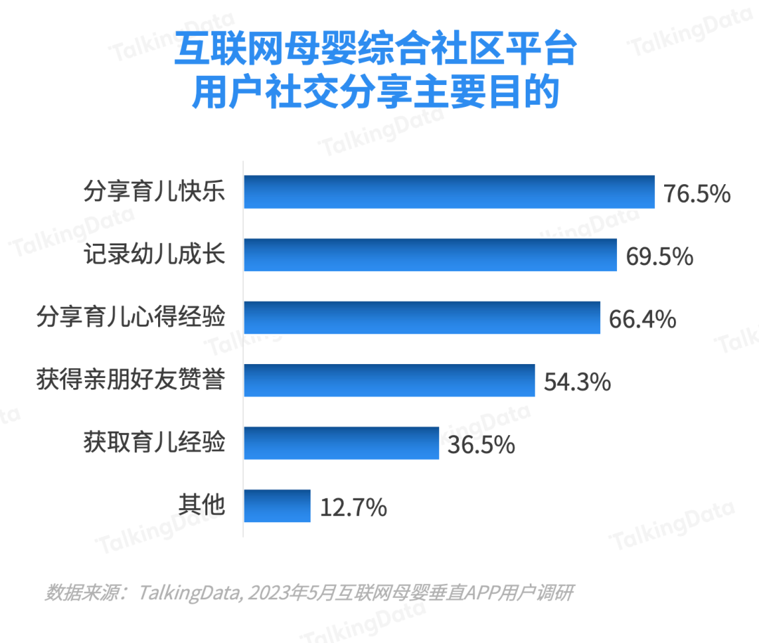對于分享目的,超過7成用戶愿意分享育兒過程中的快樂和幸福,傳遞正能量;同時,69.5%用戶是為了記錄孩子成長的過程,66.4%的用戶是為了分享育兒心得經驗。